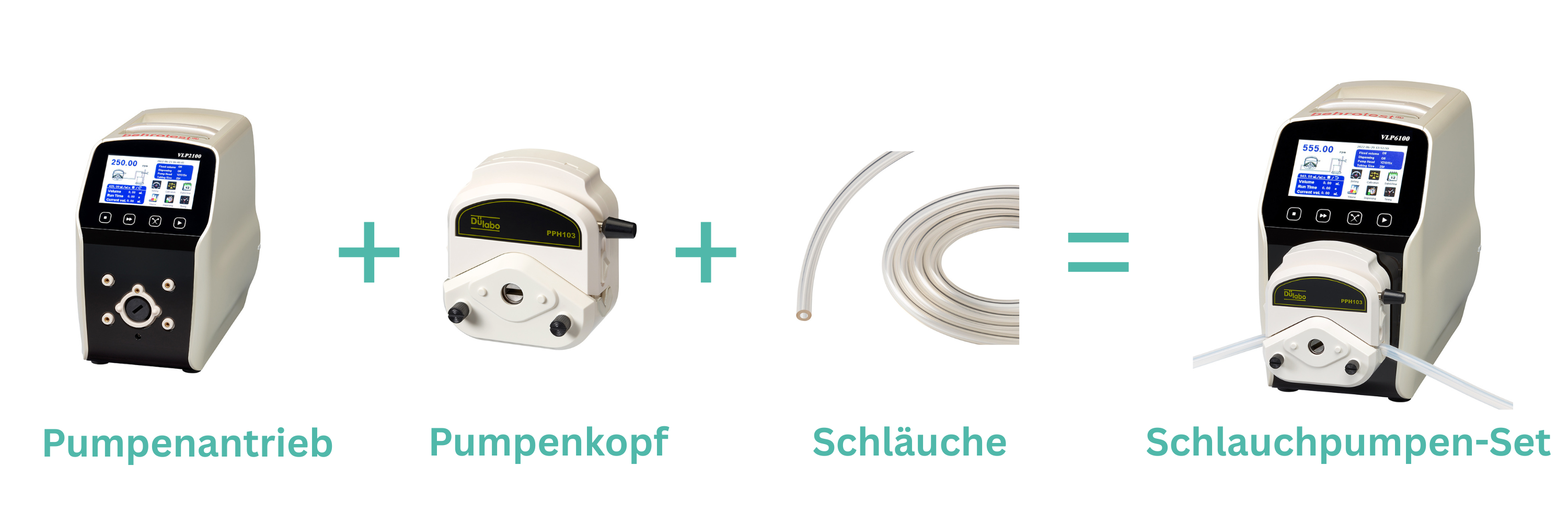 Wie bei der Exclusive Line besteht das System aus Pumpe, Pumpenkopf und Schlauch – alle Komponenten sind flexibel austauschbar. Je nach Kombination variiert die Durchflussrate.